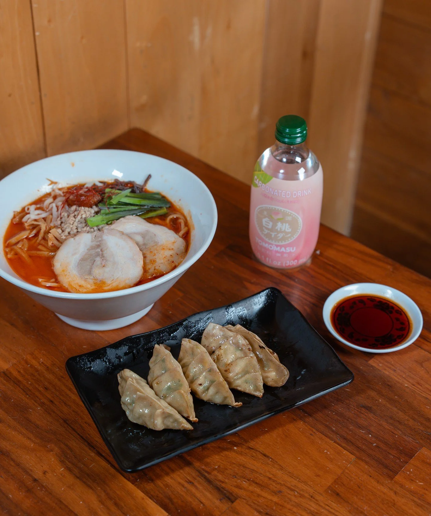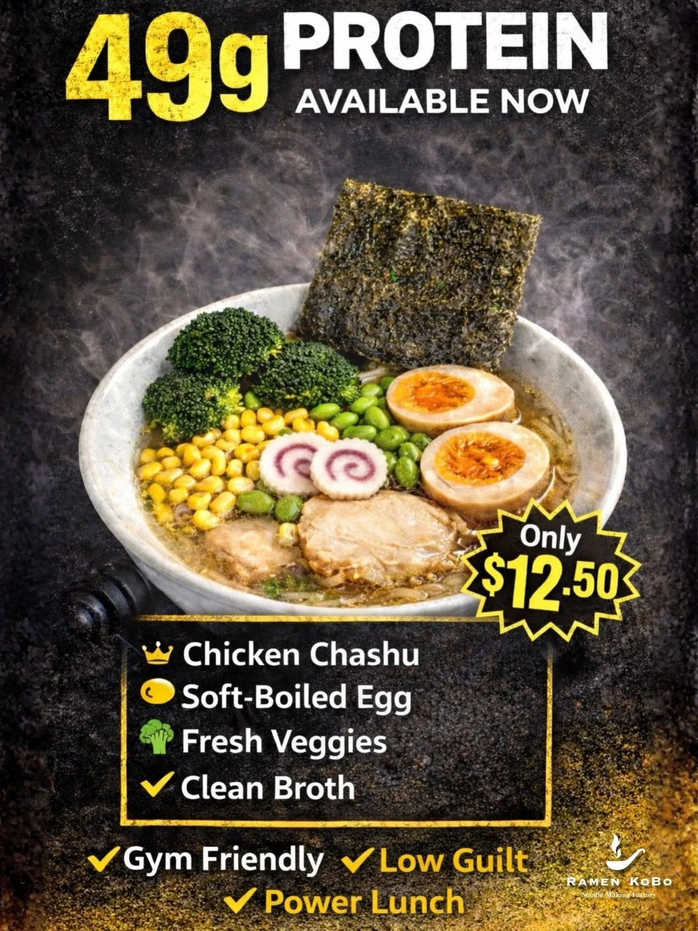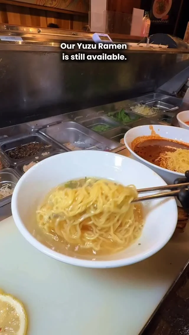 Bright, bold, and refreshing — our Yuzu Ramen features a citrusy chicken broth topped with grilled chicken, sliced lemon, shredded leeks, and kaiware. A zesty twist on comfort in every bowl.